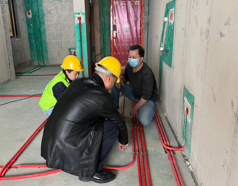 在工程质量管控上,巡检组对现场水电施工的墙固升级工艺进行全方位细致核查,从线槽开槽的规整度、洗槽的清洁度,到墙固涂刷的均匀度、管线铺设的规范性、穿线的有序性,再到施工后的清理收尾工作,每一道工序都对照施工标准逐项核验,从源头规避管线松动、墙面开裂等潜在质量隐患,确保水电施工既符合规范要求,又兼顾实用性与美观度。