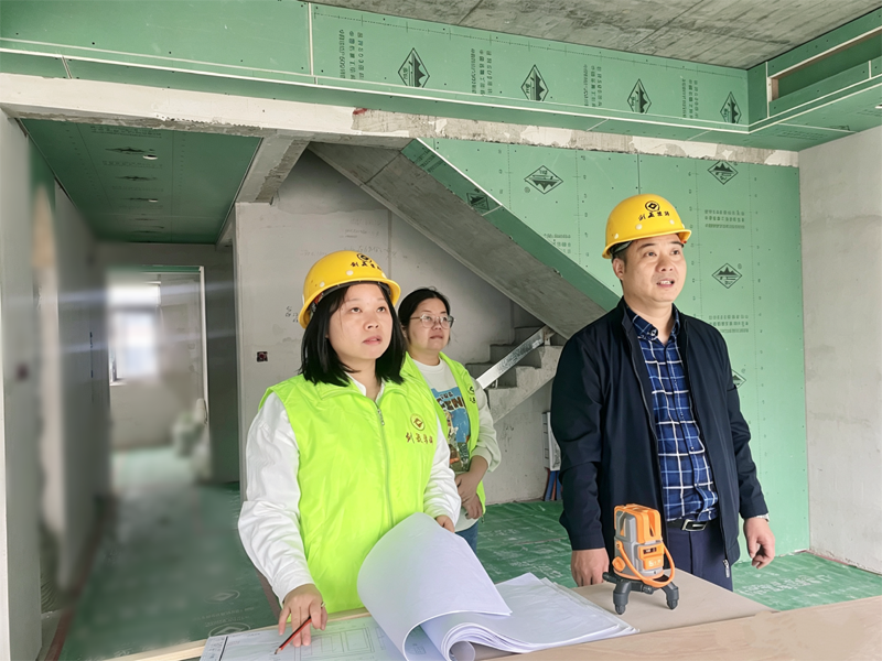 “木工是家装的‘骨架’,骨架扎得牢,后续漆工施工才能更顺畅、装修效果才能更出彩。”现场,巡检组一边对照施工图纸,一边细致排查每一处木工细节,从吊顶的轻钢龙骨间距、石膏板转角处理,到钉眼的防锈处理、基层的牢固程度,每一个环节都逐一核对、逐项检验。